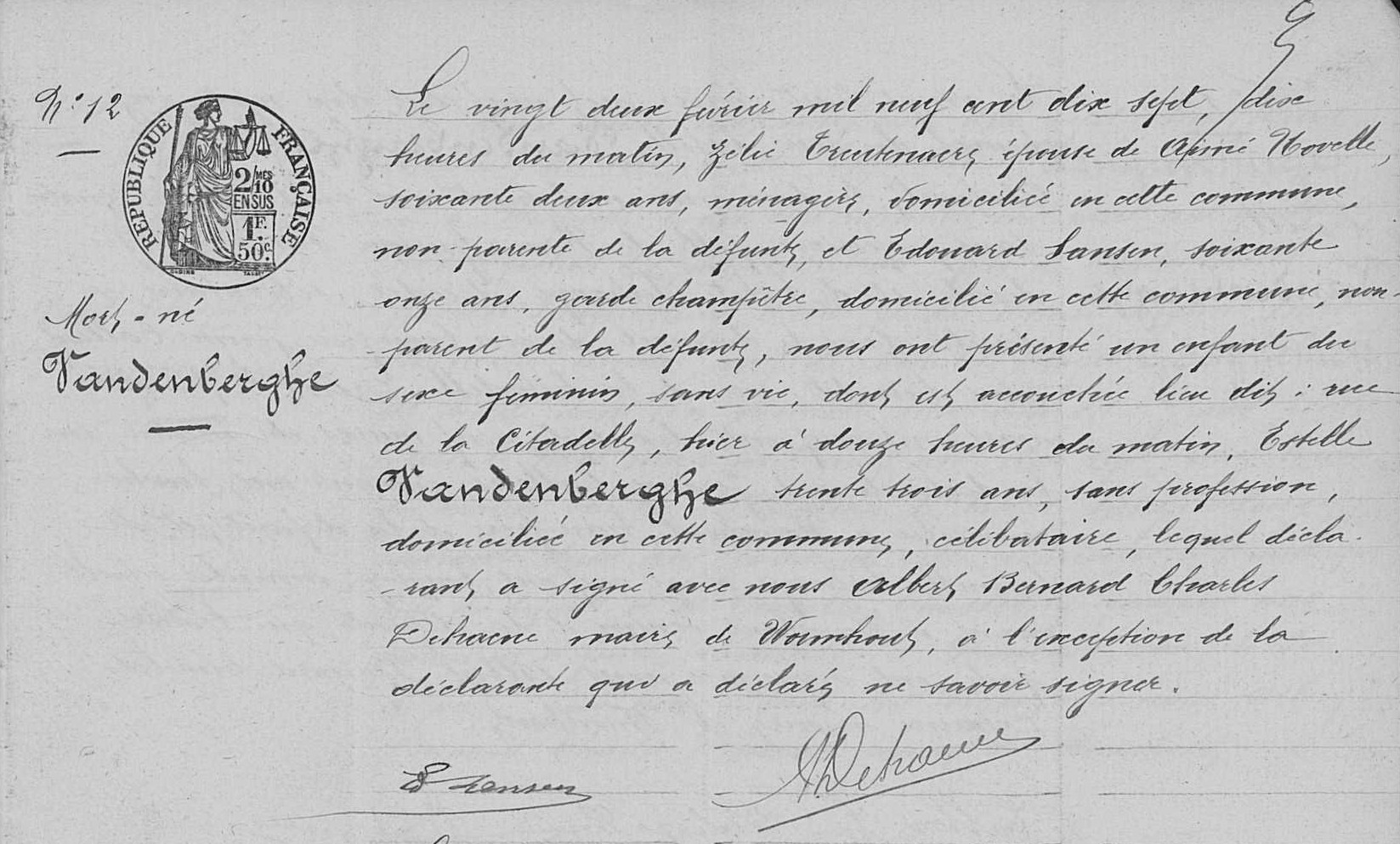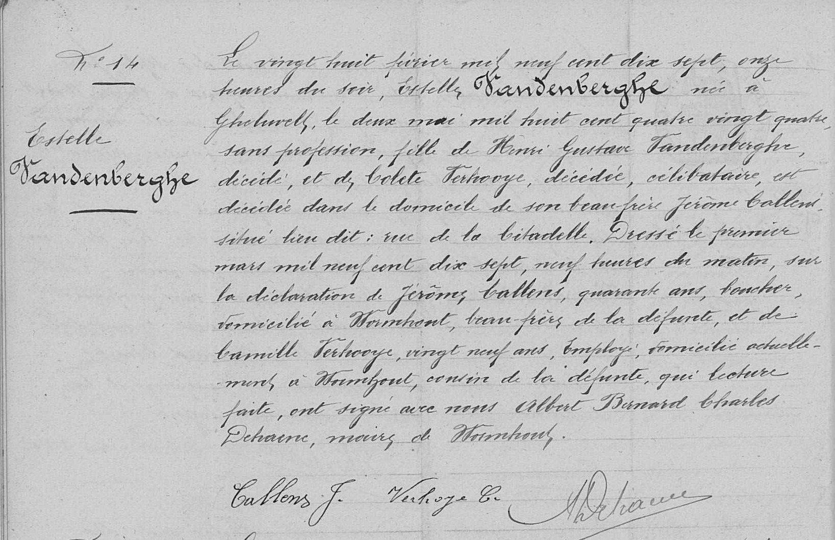 ↑ Overlijdensakte van Vandenberghe Estelle ↑
