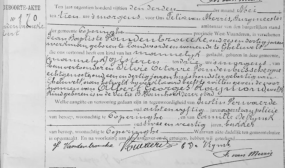 ↑ Geboorteakte van Vandenbroucke Albert Georges Raymond ↑