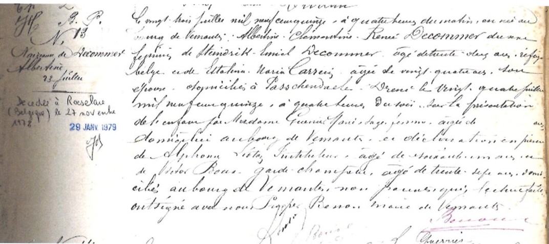 ↑ Geboorteakte van Decommer Albertine Clémentine Renée ↑