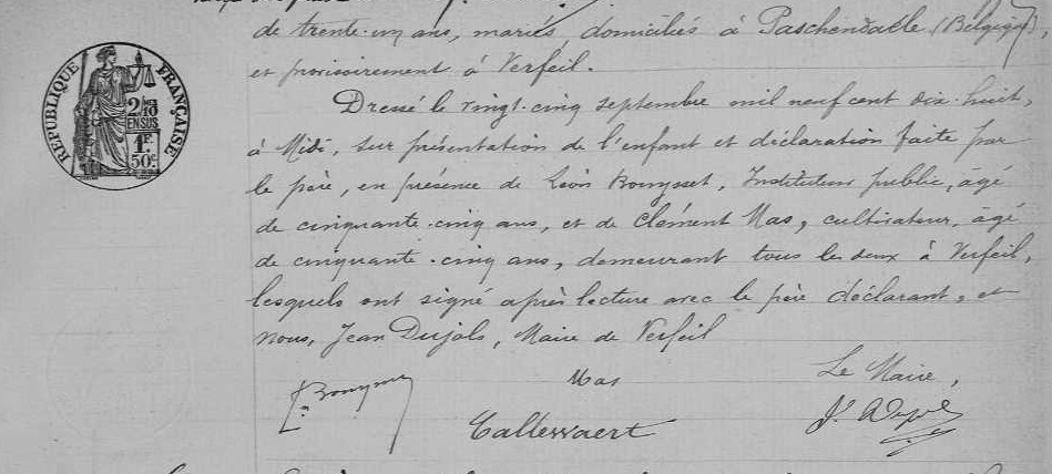 Zoon Callewaert Jules werd tijdens hun verblijf in Frankrijk geboren op 24/09/1918 in Verfeil-sur-Seye