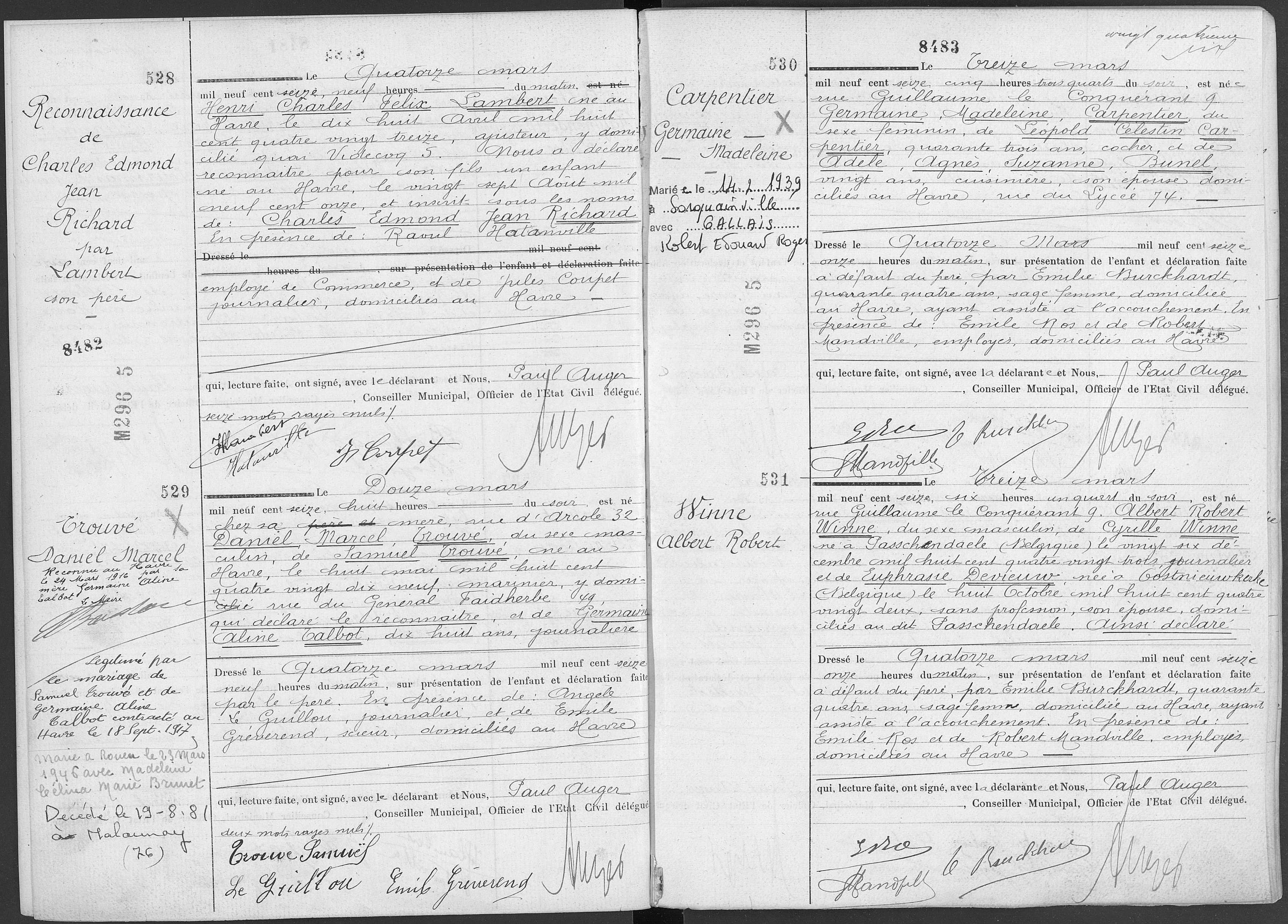 Zoon Winne Albert Robert werd tijdens hun verblijf in Frankrijk geboren op 13/03/1916 in Le Havre