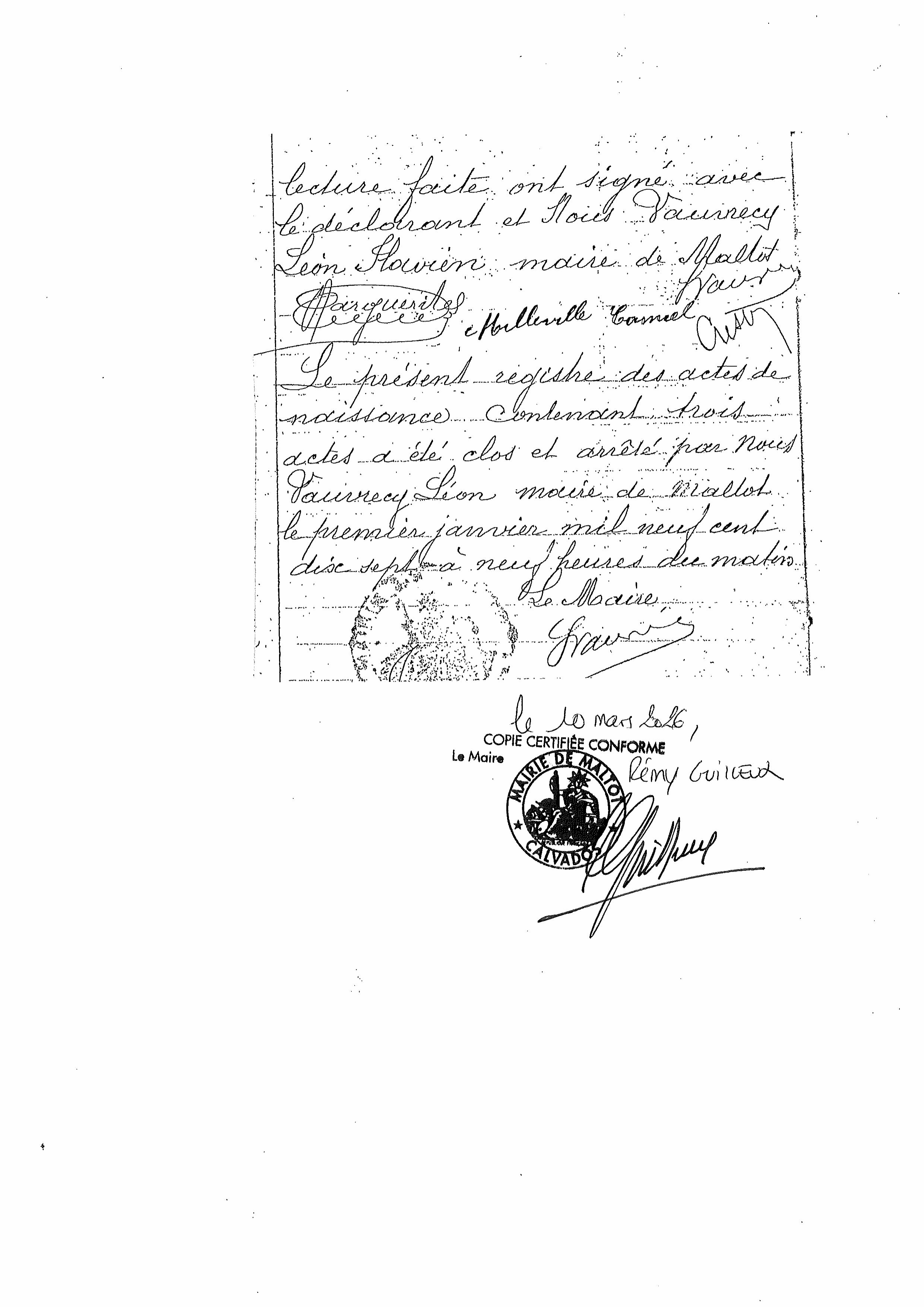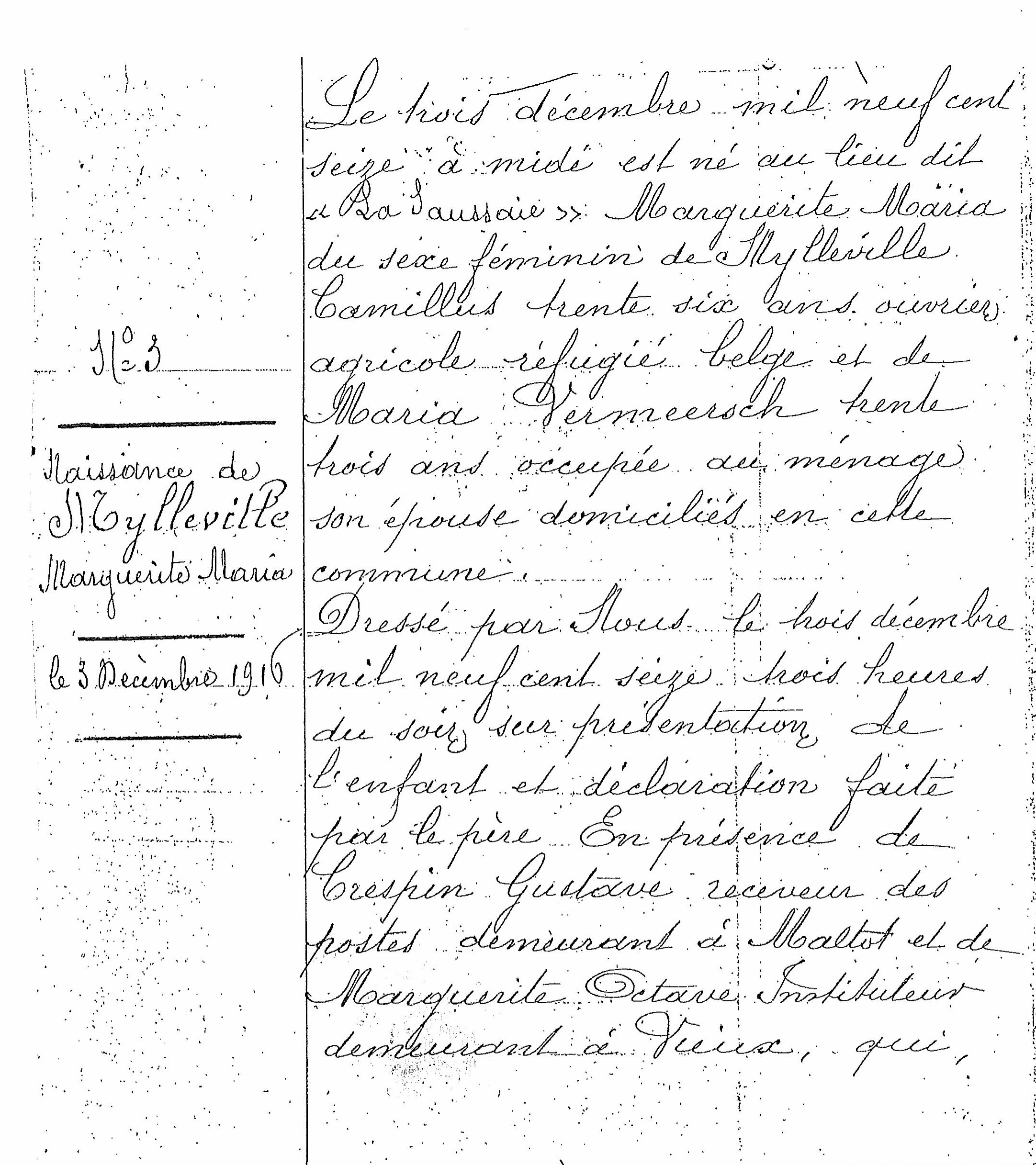 Dochter Milleville Marguerite Maria werd tijdens hun verblijf in Frankrijk geboren op 03/12/1916 in Maltot