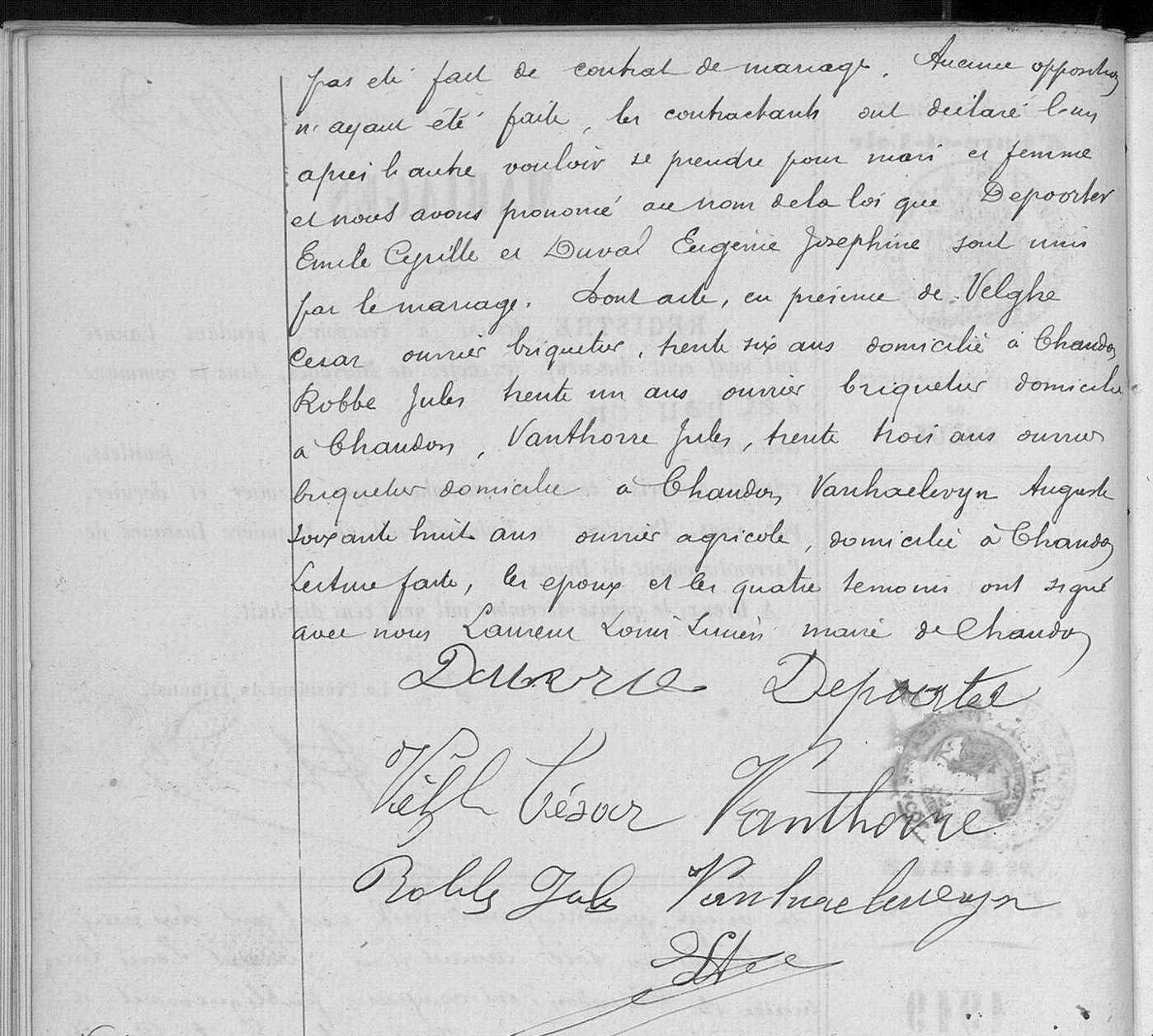 ↑ Huwelijksakte van Depoorter Emile Cyrille deel 1 ↑