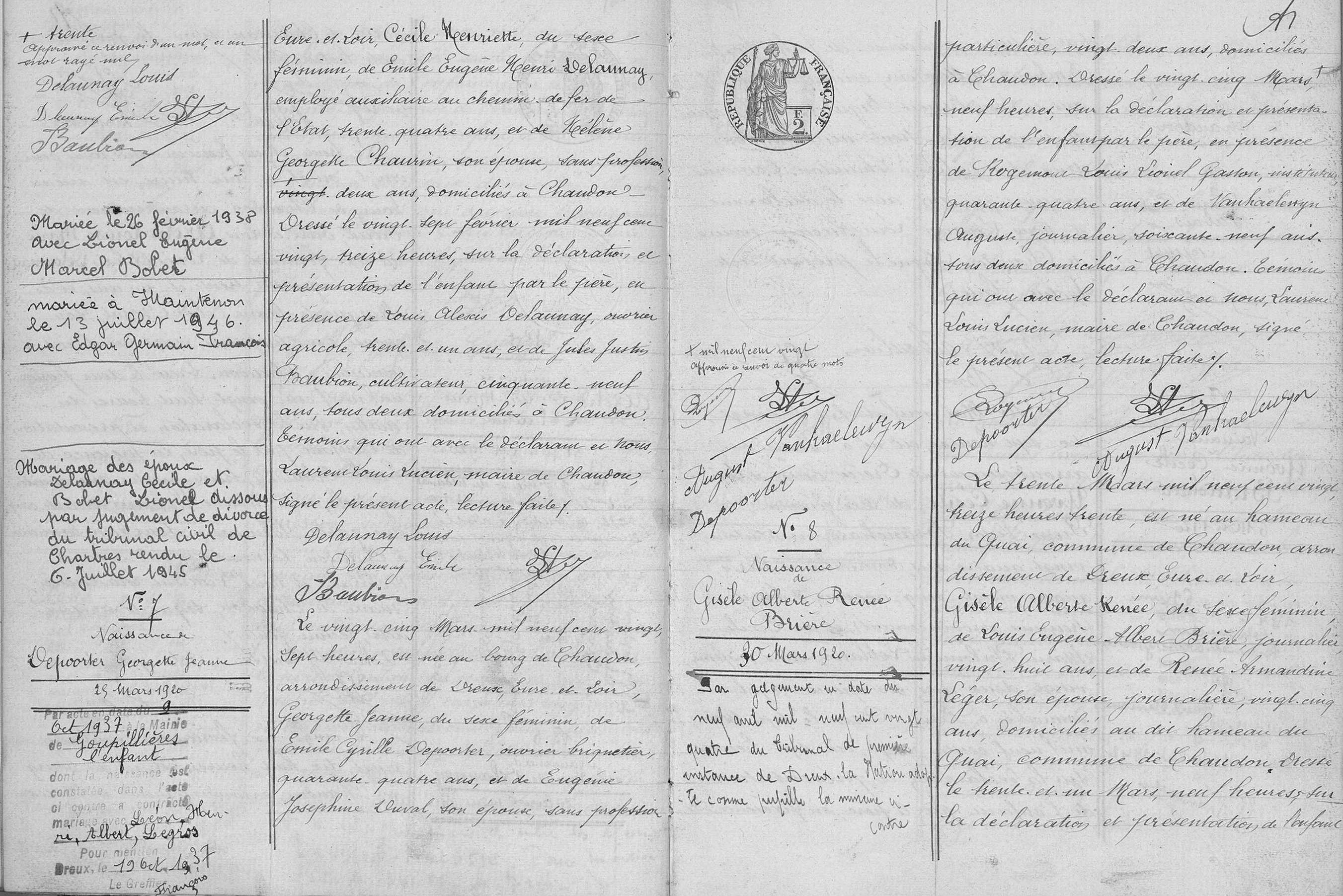 Dochter Depoorter Georgette Jeanne werd tijdens hun verblijf in Frankrijk geboren op 25/03/1920 in Chaudon