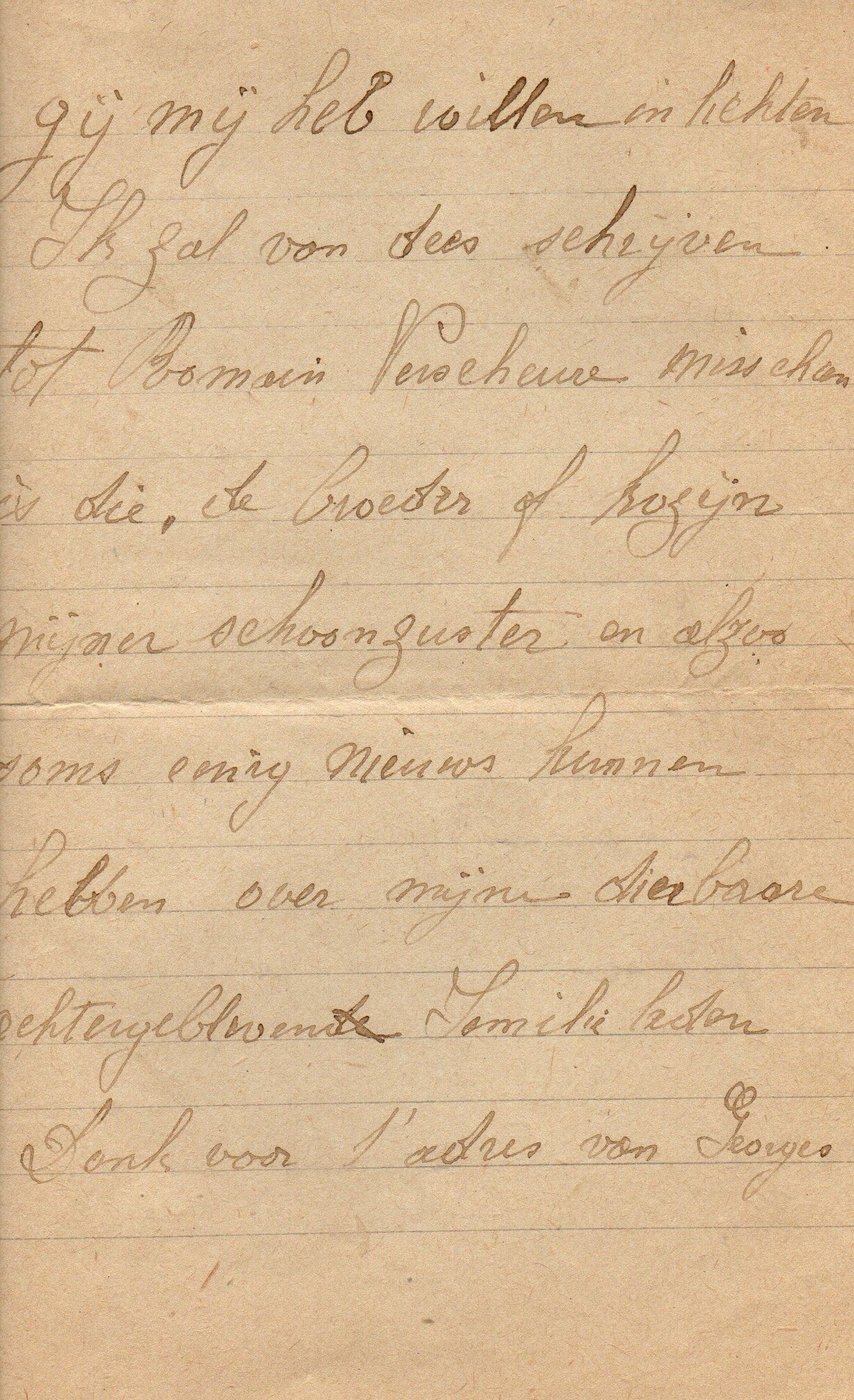 Brief met bedanking aan de heer Holvoet