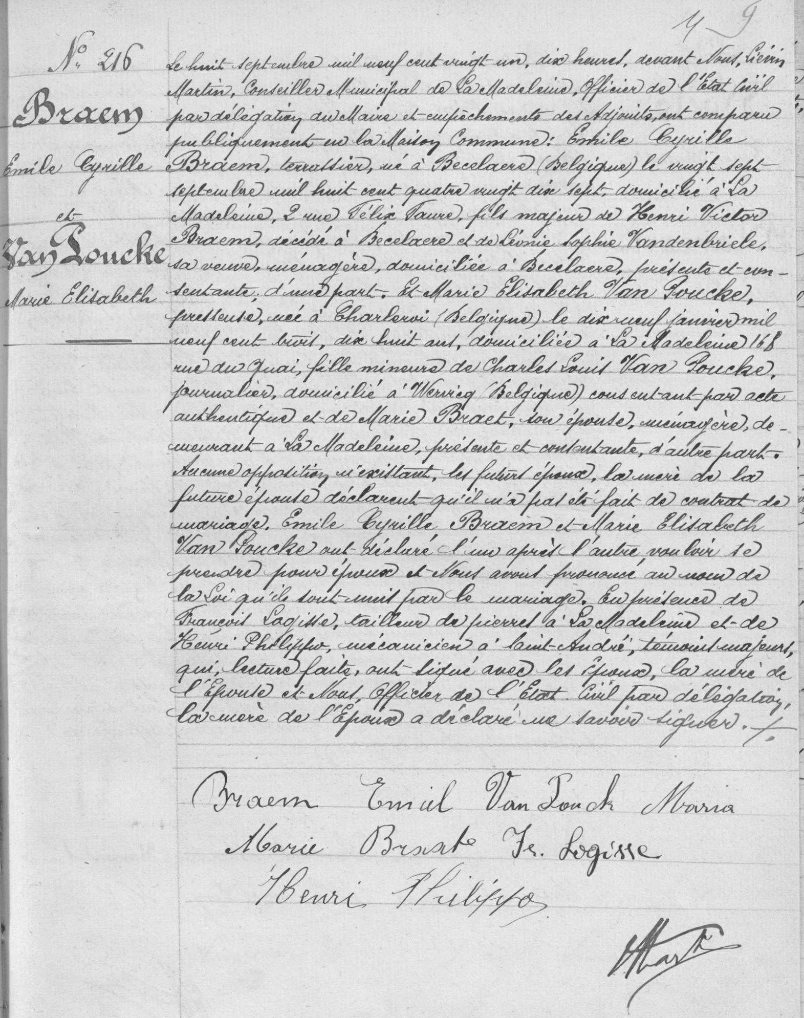 ↑ Huwelijksakte van Braem Emiel Cyriel ↑