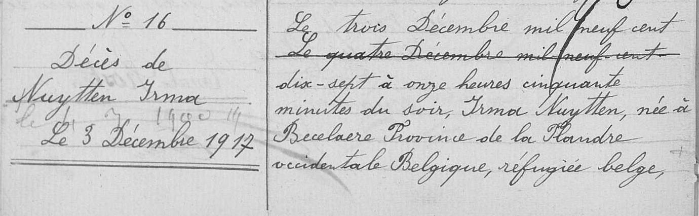 Nuytten Irma Zulma is tijdens het verblijf in Frankrijk overleden op 03/12/1917 in Veulettes-sur-Mer