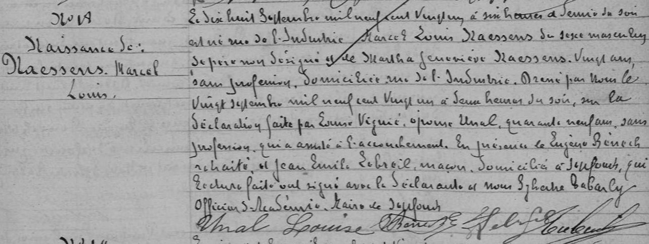 Zoon Naessens Marcel Louis werd tijdens hun verblijf in Frankrijk geboren op 18/09/1921 in Septfonds