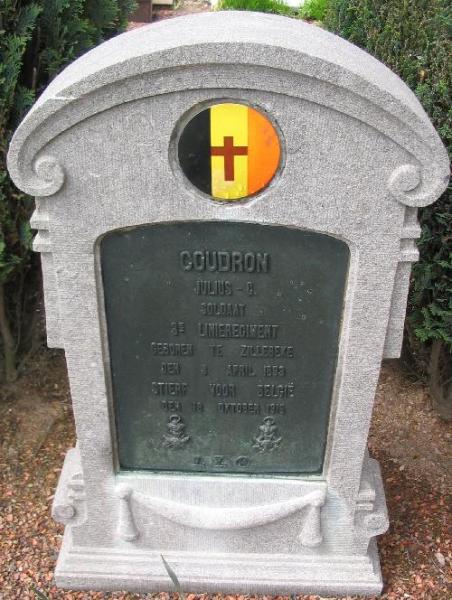 Julius Cyrilus Coudron sneuvelde als soldaat op 18 oktober 1918 op de weg van Wingene naar Aalter in Wingene. (bron: https://bel-memorial.org/) Zijn naam staat vermeld op het oorlogsmonument 1914-1918 in Geluveld.