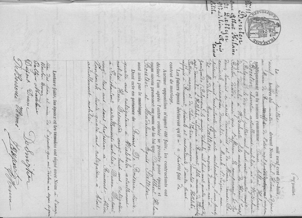 Pattyn Madeleine Agnes huwt tijdens het verblijf in Frankrijk met Bouten Omer Albert Hilaire (° Wijtschate 19/07/1892) op 13/07/1918 in Rinxent