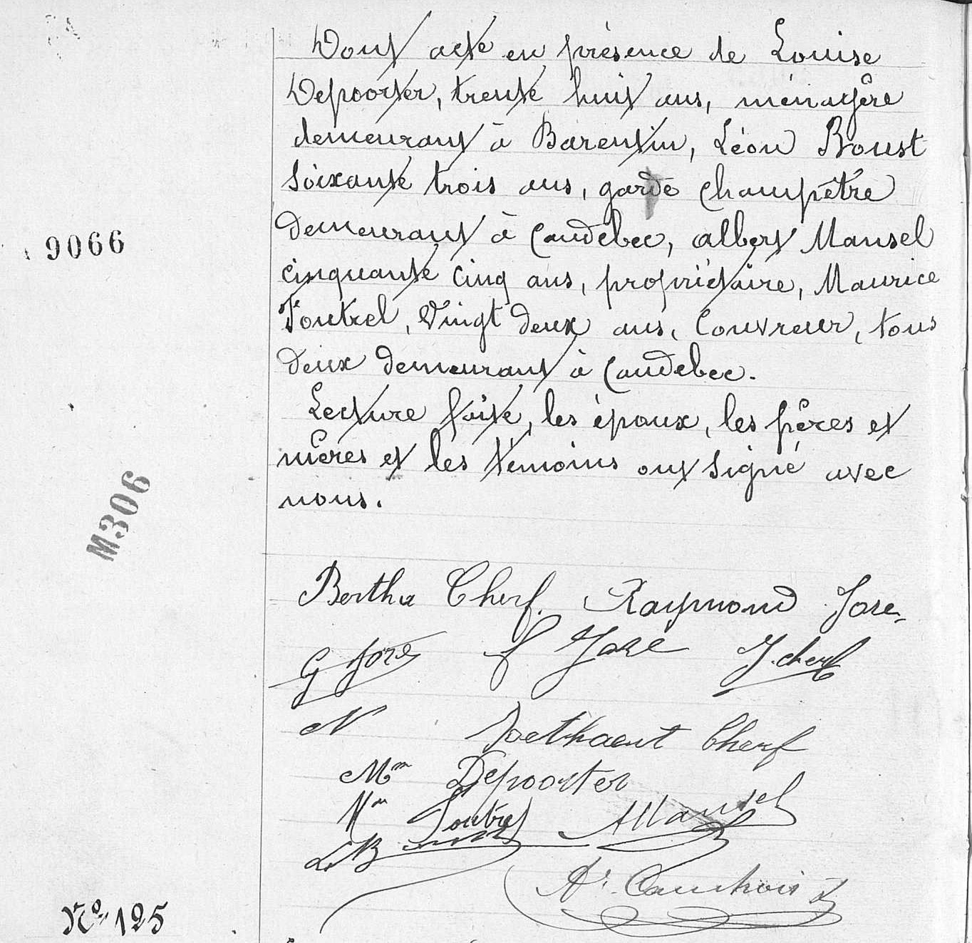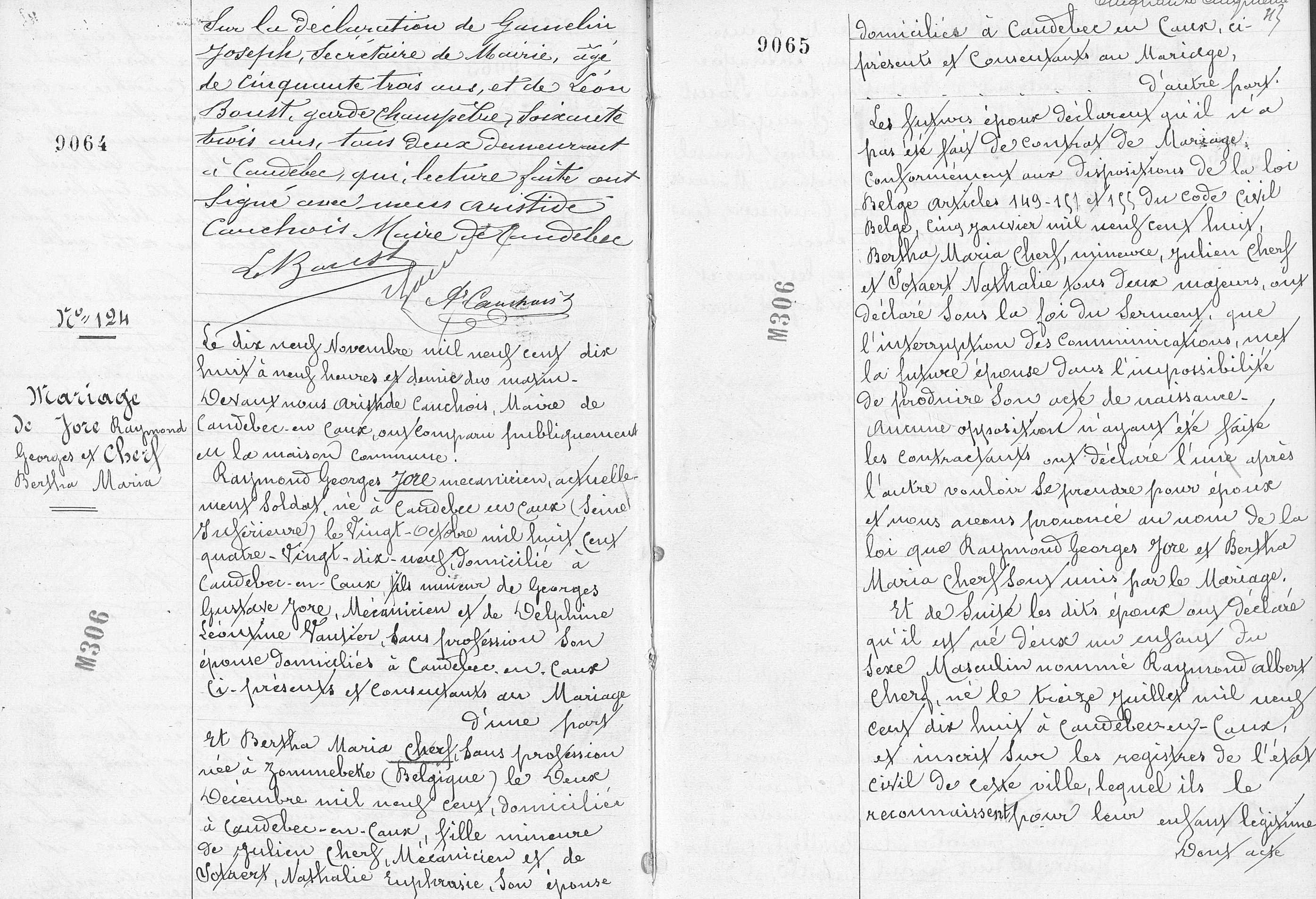Cherf Bertha Maria huwt tijdens het verblijf in Frankrijk met Jore Raymond Georges (° Caudebec-en-Caux 24/10/1899) op 16/11/1918 in Caudebec-en-Caux