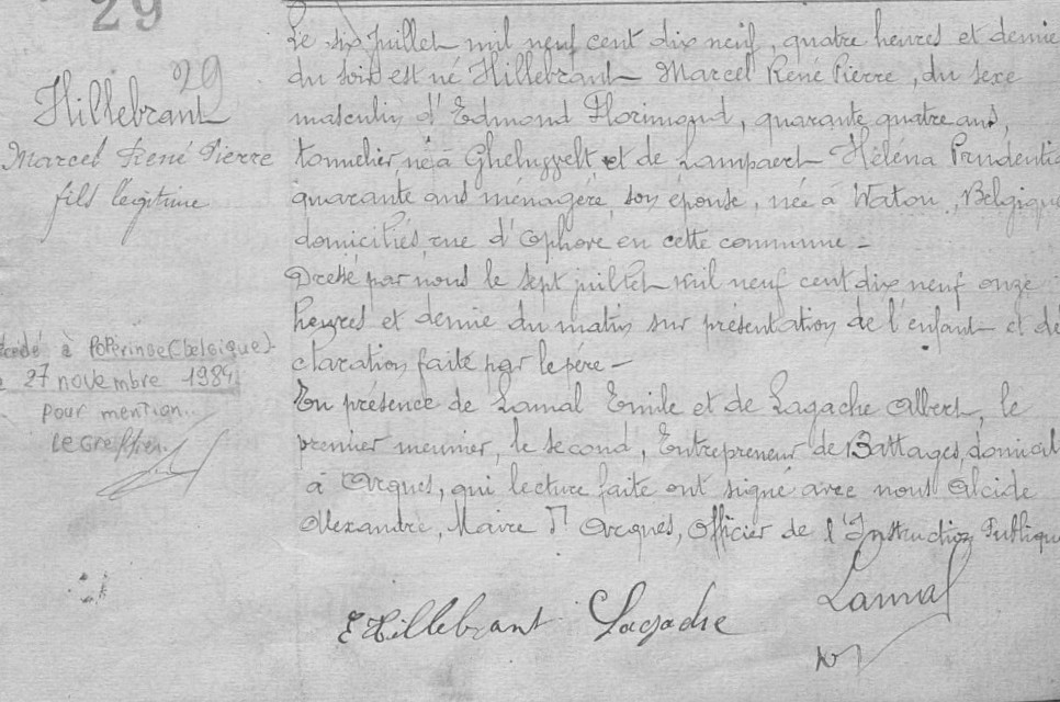 ↑ Geboorteakte van Hillebrant Marcel René Pierre ↑
